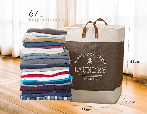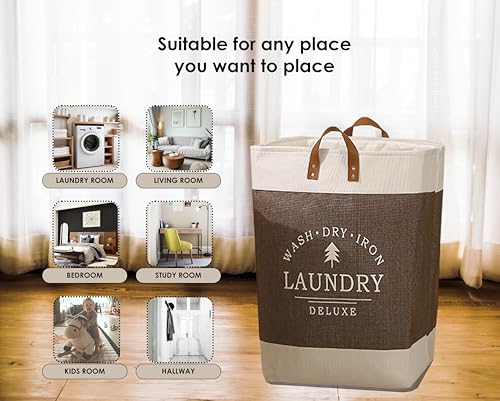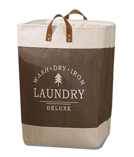Kashco - سبت غسيل كبير قابل للطي مع مقبض من الجلد الصناعي لتخزين الألعاب والملابس في غرفة النوم والحمام (بني)