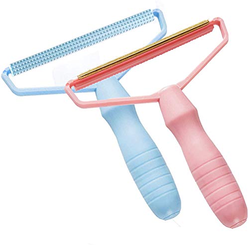 KASTWAVE - مجموعة فرش ازالة وبر محمولة لتنظيف الملابس والاقمشة من الوبر والزغب والشعر، مكونة من قطعتين (بينك وازرق)