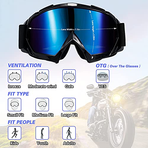 KASTWAVE - كاستويف نظارات دراجة نارية كاستويف للبالغين من قطعتين، نظارات دراجة نارية ATV للشباب، نظارات دراجة ترابية، نظارات ATV مقاومة للرياح، نظارات سباق مقاومة للغبار للاطفال والشباب والمراهقين والرجال
