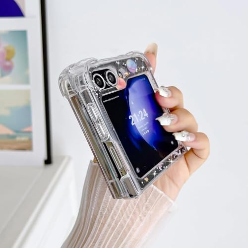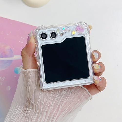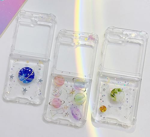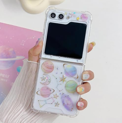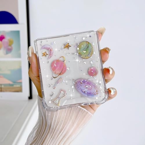 KASTWAVE - كاستويف جراب حماية متوافق مع سامسونج جالاكسي Z فليب 6 شبكة الجيل الخامس 5G، جراب موبايل شفاف لامع لامع للبنات، ممتص صدمات سيليكون ناعم مضاد للصدمات (تصميم كوكب مرصع بالنجوم)