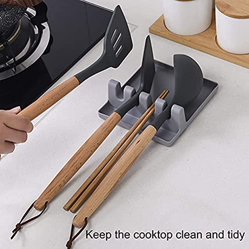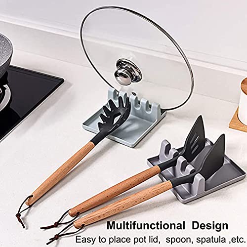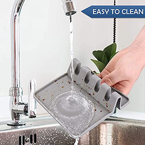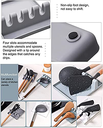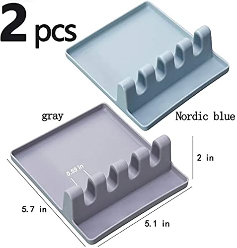 Generic - مسند ادوات المطبخ من كاستويف، مع وسادة تقطير لاواني متعددة، مقاوم للحرارة، مسند ملاعق خال من البيسفينول أ وحامل ملاعق لسطح الموقد، حامل ادوات للملاعق والملاقط واكثر من قطعتين (رمادي وازرق)