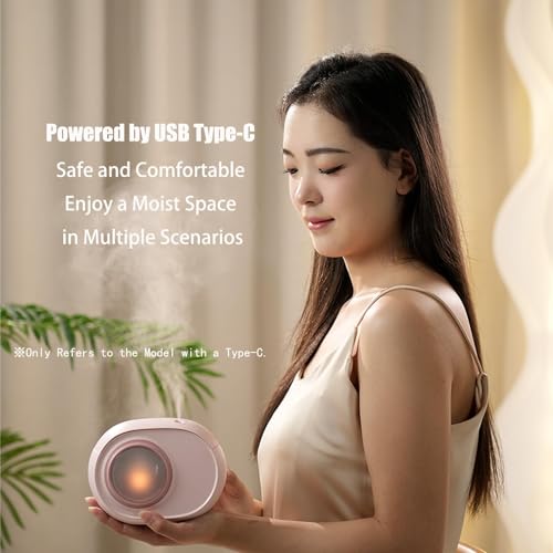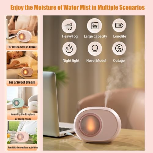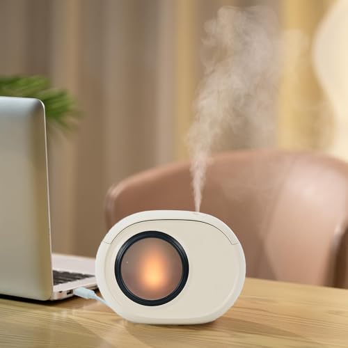 KASTWAVE - كاستويف موزع زيوت عطرية صغير، مرطب هواء بقابس 400 مل مع ضوء ليلي، مصباح نار وامض، مرطب لطيف للمكتب بمنفذ USB نوع C، موزع روائح للمنزل وغرفة النوم والمكتب والمنزل