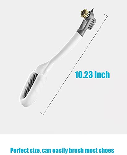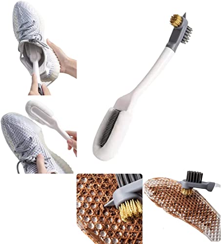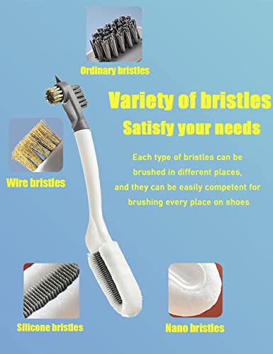 - متعددة الوظائف: الشعيرات الأربعة المختلفة على طرفي الفرشاة ستلبي احتياجاتك لتنظيف الأحذية المختلفة. شعيرات المايكروفايبر الناعمة والفرشاة السيليكون على رأس الفرشاة يجعلون تنظيف سطح الحذاء سهلًا. يمكن للفرشاة المتينة والفرشاة السلكية تنظيف جوانب ونعل الحذاء. طرف الفرشاة مصمم لتنظيف الفجوات في النعل بسهولة ويعمل بشكل رائع في إزالة البقع العنيدة.