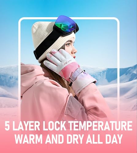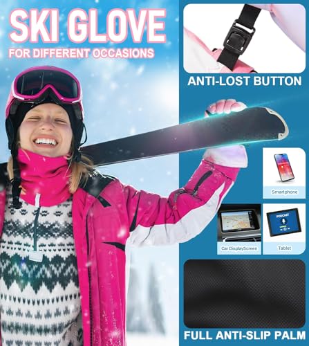 KASTWAVE - قفازات تزلج شتوية للنساء - مقاومة للماء والرياح والانزلاق، قفازات دافئة جيدة التهوية مع قدرة حرارية تعمل باللمس، للتزلج والجري وركوب الدراجات من كاستويف