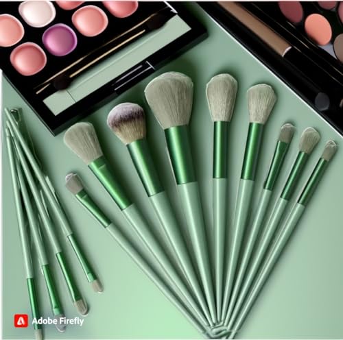 Kasutta - فرش مكياج بشعيرات فايبر فائقة النعومة للمكياج اليومي من كاسوتا، 13 قطعة، محمولة، تتضمن شنطة تخزين، ايميرالد تاتش ترتقي بالجمال إلى آفاق جديدة