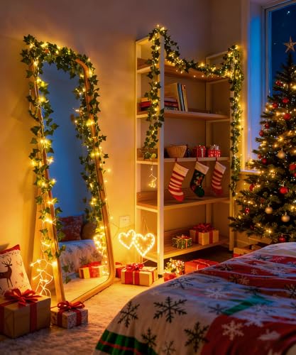 KASZOO - اكليل نباتات كرمة اللبلاب الاصطناعية متدلية من 12 قطعة بطول 84 قدم مع 80 شريط اضاءة ليد معلق للمنزل والمطبخ والحديقة والمكتب وحفلات الزفاف وديكور الحائط بلون اخضر كاسزو