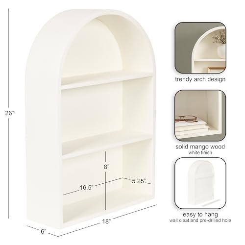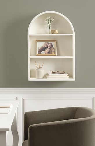 Kate and Laurel - رف حائط اركوت مقوس عصري بتصميم انتقالي للتخزين فوق التواليت أو رف تخزين للمدخل من كيت اند لوريل، أبيض، 46 × 15 × 66 سم