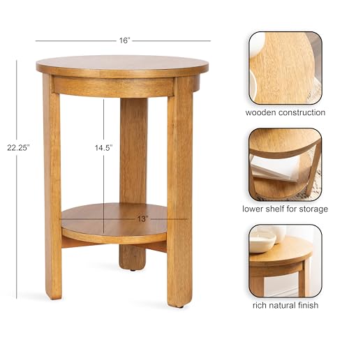 Kate and Laurel - كيت اند لوريل طاولة جانبية دائرية من فوكسفورد، 16 × 16 × 23، بني طبيعي، طاولة جانبية دائرية انتقالية من طبقتين مع مساحة تخزين وهيكل خشبي مرن لديكور غرفة النوم
