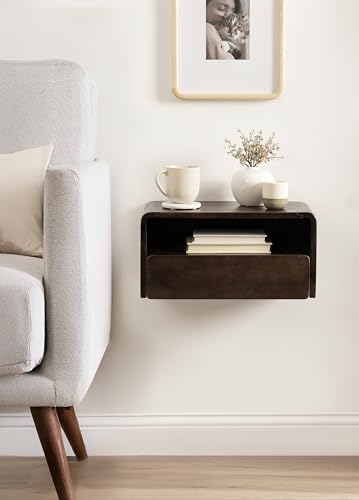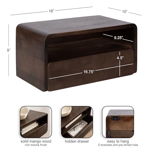 Kate and Laurel - طاولة خشب عائمة عصرية كاتو من خشب المانجو مع درج لغرفة النوم أو طاولة بجانب السرير أو غرفة المعيشة للتخزين على الحائط من كيت اند لوريل، مقاس 46 سم (عرض)، 25 سم (عمق)، 23 سم (ارتفاع)، لون بني غامق