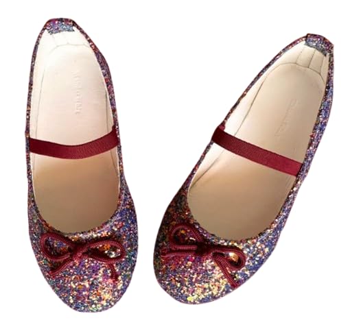 Katee - حذاء فلات بتصميم فيونكة مع حزام مطاطي من كاتي جيرل - WW2 (جليتر متعدد الالوان، المقاس: 30)