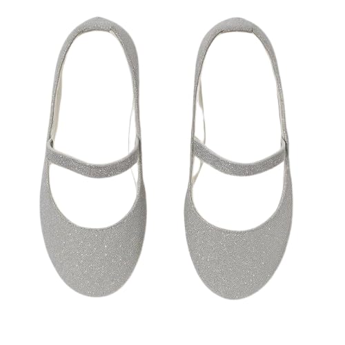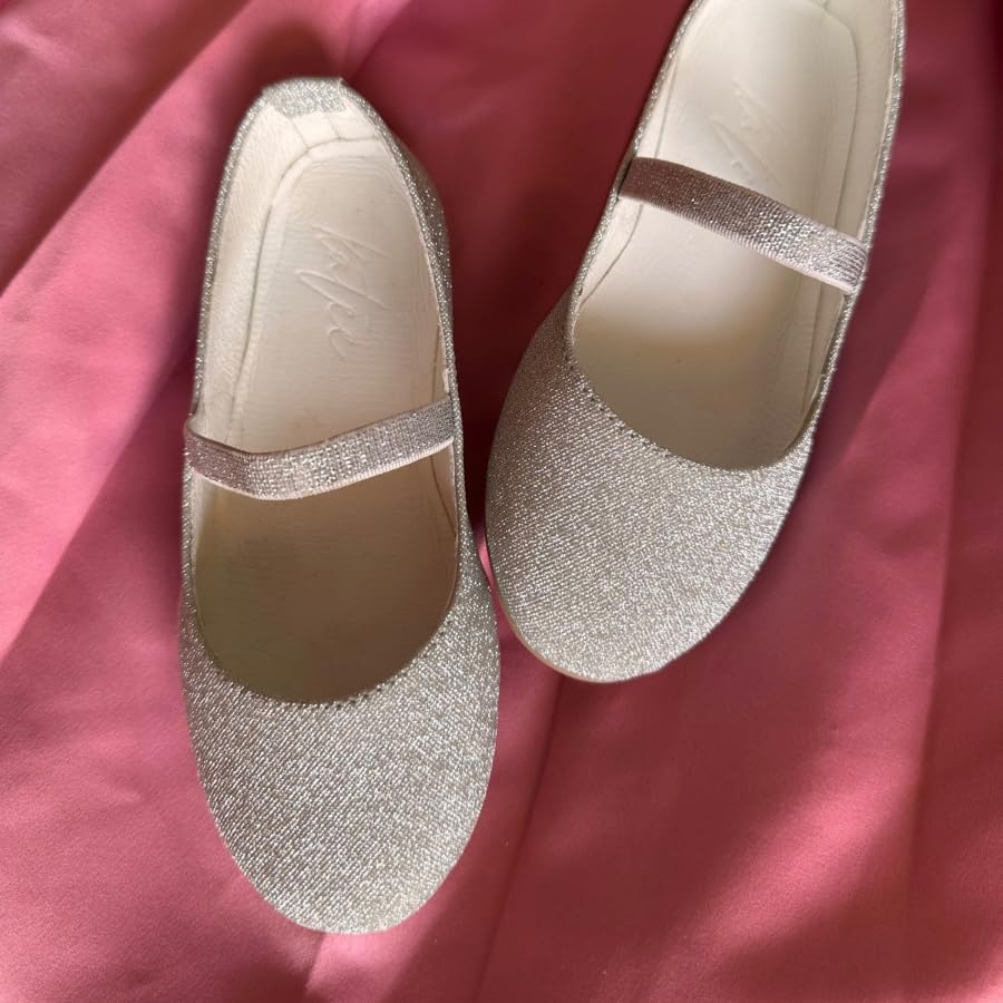Katee - حذاء باليه مسطح لامع للبنات من كاتي، حذاء ماري جين زهري لامع (فضي، 26)
