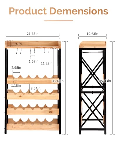 - 【منصة مضادة للإغراق وحامل زجاجي】يوفر رف النبيذ الخشبي هذا سعة تخزين مذهلة. مساحة كبيرة على اللوح الخشبي العلوي تسمح لك بتخزين النبيذ والفواكه وغيرها من المشروبات ذات الصلة. يتميز بمساحة تخزين ذكية، سيمكنك رف أكواب النبيذ هذا أسفل الخزانة من تخزين المزيد من أكواب النبيذ و20 زجاجة من النبيذ. تتميز الإطارات الحديدية على شكل حرف X بوظيفة الجمال وتمنع الأشياء من السقوط.