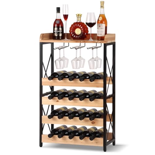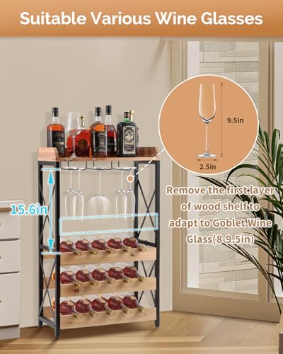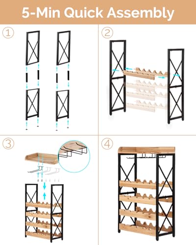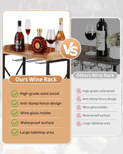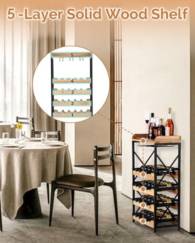 KATHY&BOB - رف مشروبات من الخشب الصلب قائم بذاته، رف تخزين من 5 طبقات مع سطح طاولة خالٍ من التمايل قابل للتكديس 20 زجاجة للمنزل والبار والمطبخ وغرفة الطعام في الهواء الطلق