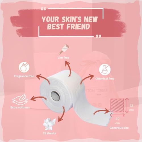 Kating - لفة مناديل ناعم للاستخدام الجاف أو المبلل في تنظيف الوجه، مصنوعة من قطن نقي قابل للتحلل، لمنحك أسلوب عناية مميز للعناية ببشرتك وتنظيف وجهك للاستعمال واحدة من كاتينج، 75 قطعة