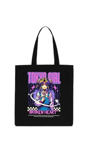 Generic - شنطة يد كبيرة توت بتصميم انيمي جيرل من كاواي، لون اسود، مقاس 15