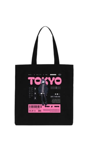 Generic - شنطة يد كبيرة توت بتصميم شخصية بنت انمي لطيفة، لون أسود، مقاس 16