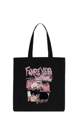 Generic - شنطة يد كبيرة توت بتصميم بنت انيمي لطيفة، لون أسود 2