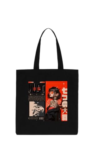 Generic - شنطة يد كبيرة توت بتصميم أنيمي جيرل من كاواي، لون أسود، مقاس 22