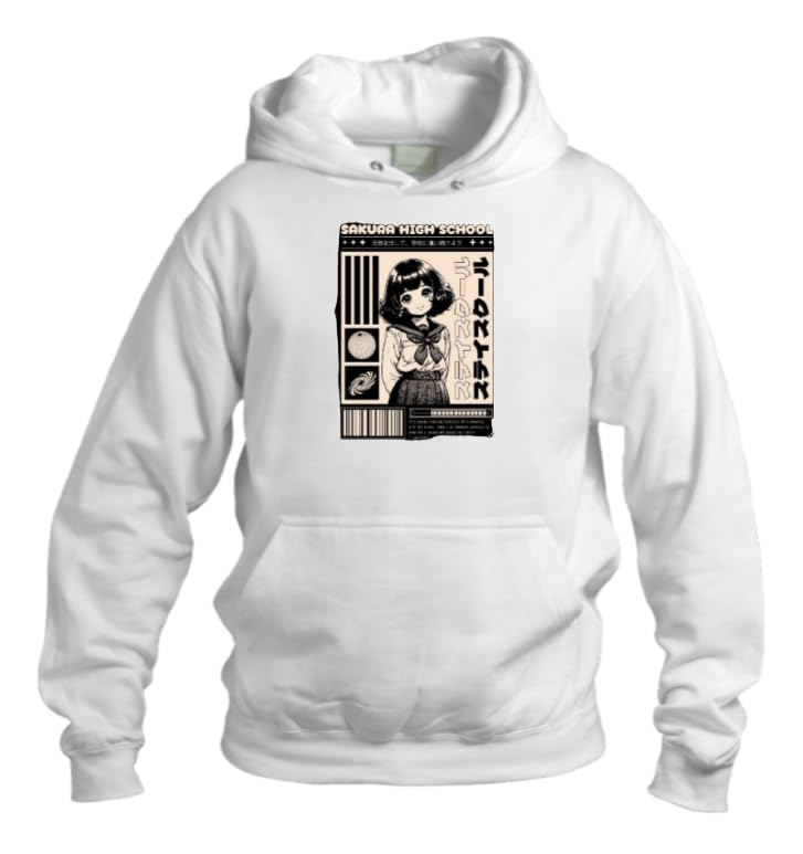 Generic - سويت شيرت بقلنسوة بتصميم انيمي لطيف للبنات من كاواي - ابيض 1
