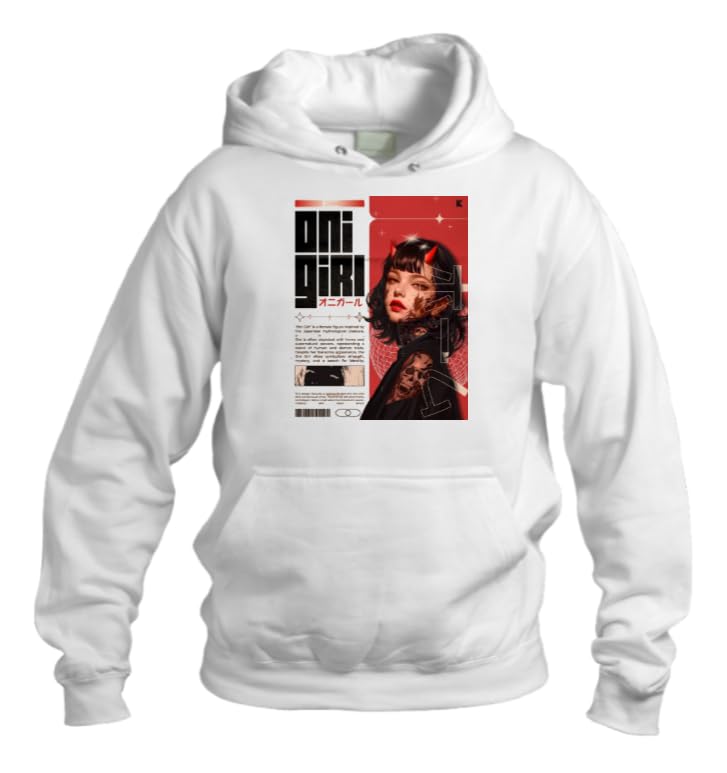 Generic - سويت شيرت بقلنسوة بتصميم انيمي لطيف للبنات من كاواي، لون ابيض، مقاس 21