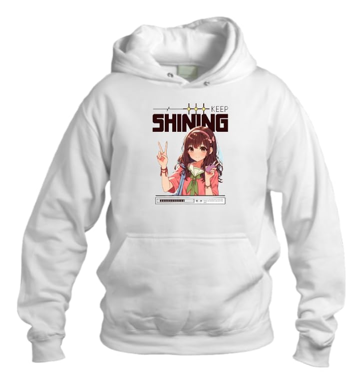 Generic - سويت شيرت بقلنسوة بتصميم انيمي لطيف للبنات من كاواي، لون ابيض، مقاس 4