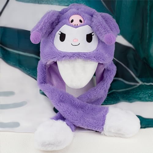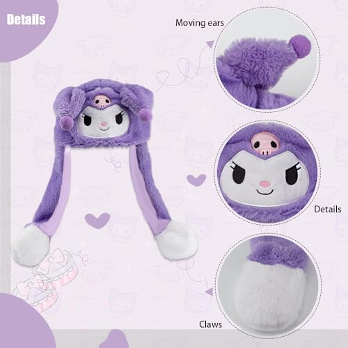 Akutoer - قبعة بأذنين متحركتين للنساء، قبعة شتوية لطيفة من القطيفة على شكل أرنب أنمي من كاواي