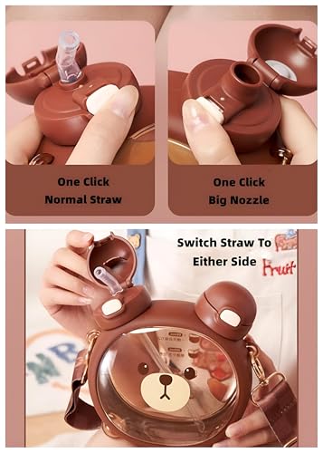 - يشتمل التصميم المبتكر لزجاجة المياه هذه على زرين بلمسة واحدة موجودين على أذني الدب، مما يجعلها سهلة الاستخدام بشكل لا يصدق. يؤدي الضغط على الأزرار إلى إخراج الماصات تلقائيًا، مما يوفر تجربة شرب ممتعة مع رشفات مقاومة للرذاذ. توفر الفوهات المزدوجة - واحدة لماصة عادية والأخرى للفم العريض - خيارات شرب متعددة الاستخدامات، تلبي تفضيلاتك وتجعل الترطيب أسهل من أي وقت مضى.