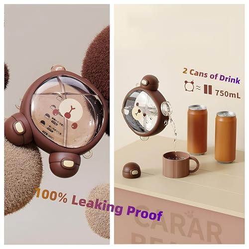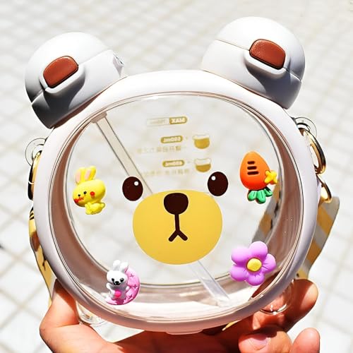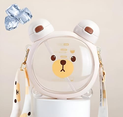 Generic - زجاجة مياه كبيرة لطيفة بتصميم راس دب ثلاثي الأبعاد مع ماصة مزدوجة، زجاجات مياه لطيفة مانعة للتسرب خالية من البيسفينول أ، زجاجة شرب محمولة للنزهة والمدرسة والمكتب والسفر من كاواي (دب أبيض)