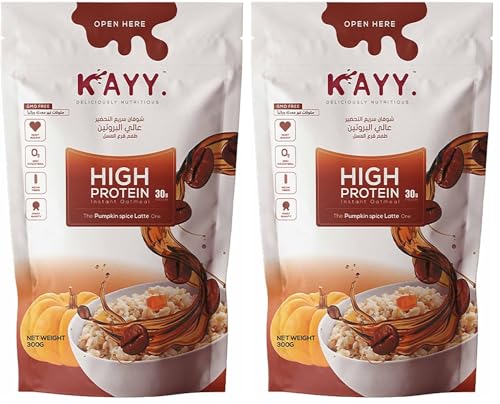 Kayy - شوفان عالي البروتين بنكهة اليقطين والقهوة من كاي - 300 جرام، عبوة من 2 قطعة