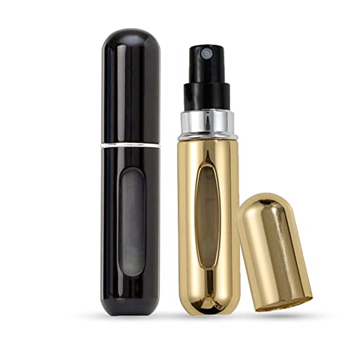 - 【مجموعة بخاخ عطور قيمة】 بخاخ عطور صغير الحجم بسعة 5 مل قابل لإعادة تعبئة العطر/التونر يسمح لك بحمله في أي مكان يأتي في قطعتين بلون ذهبي فاخر وأسود أنيق.