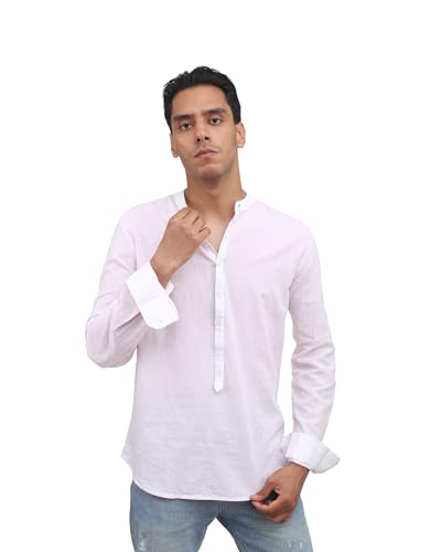 Kazary - قميص كتان نصف ياقة وأكمام للرجال من كازاري