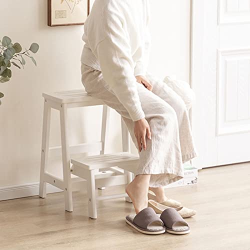 KAZUP - كرسي تسلق خشب قابل للطي بدرجتين مناسب للاستخدام داخل المنزل كمقعد قدم صغير وسلم وقاعدة غير قابلة للانزلاق لارتداء الأحذية من كازاب