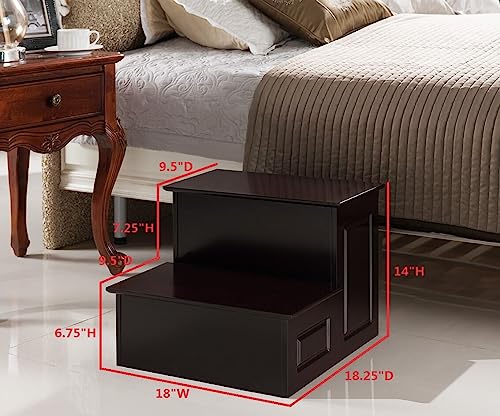 KB Designs - كيه بي ديزاينز مقعد خشبي بدرجتين للمطبخ والحمام وغرفة النوم وغرفة المعيشة بلون كرزي