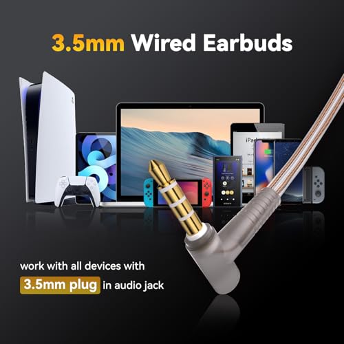 Yinyoo - سماعات اذن K01 من كيه بير، سماعات داخل الاذن، سماعات اذن سلكية بصوت جهوري غامر هاي فاي، خاصية الغاء الضوضاء للالعاب مع قابس 3.5 ملم للكمبيوتر واللابتوب والطلاب والمدرسة، كفالة لمدة عامين (بدون