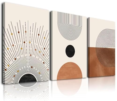 KBKBART - لوحات جدارية من كي بي كي بارت، طباعة فنية لغرفة المعيشة والنوم بتصميم تجريدي بوهيمي، لون بني، مقاس 30.48 × 40.64 سم، مجموعة من 3 قطع مؤطرة