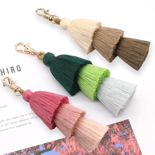 KBRPEY - مجموعة من 3 سلاسل مفاتيح بتصميم بوهيمي ريترو عصري مع شراشيب لطيفة للبنات مناسبة كهدية من كيه بي ار بي اي واي