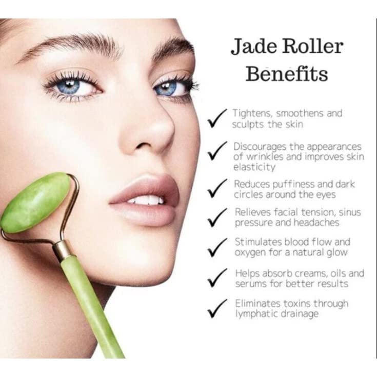 - يساعد التدليك باستخدام رولر حجر اليشم الطبيعي ومجموعة جوا شا على تنشيط أنسجة الوجه وإرخاء العضلات مما يؤدي إلى تقليل الانتفاخ. كما يساعد أيضًا في تقليل ظهور التجاعيد والهالات السوداء.