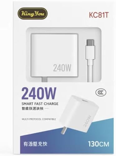 Generic - شاحن كينج يو KC81T، 240 واط، شحن سريع ذكي، كابل تايب-سي-130 سم، متعدد البروتوكولات