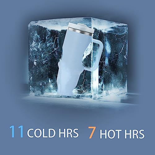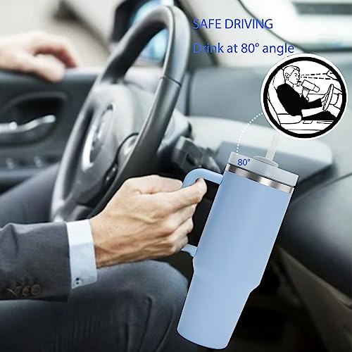 KD ZONE - كوب بسعة 40 اونصة مع مقبض وغطاء بماصة من كيه دي زون، كوب معزول بتفريغ الهواء من الستانلس ستيل، كوب سفر بغطاء ماصة، كوب ماء او شاي مثلج او قهوة، هدايا للنساء والرجال، ازرق سماوي