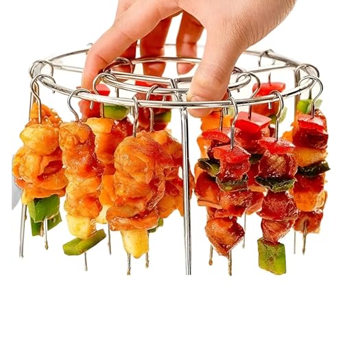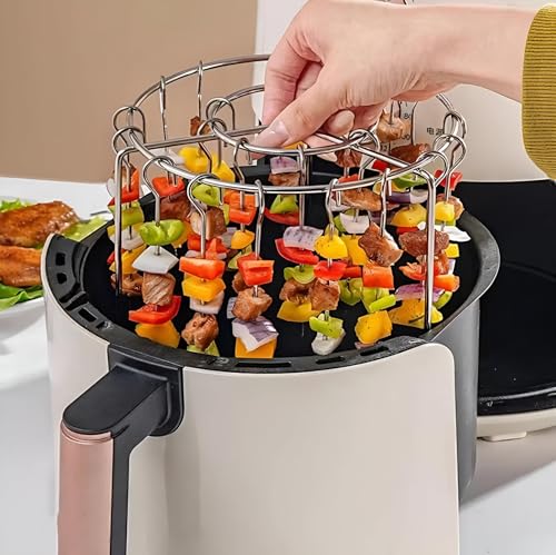 Generic - رف اسياخ كباب - حامل دائري من الستانلس ستيل مناسب للمقلاة الهوائية مع خطافات تعليق، ملحقات شواء مثالية لأسياخ اللحوم والخضروات