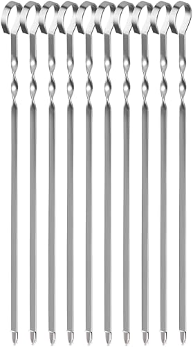 Generic - أسياخ الكباب - عبوة من 10 أسياخ من الفولاذ المقاوم للصدأ مقاس 45 سم، مثالية لشواء اللحوم والخضروات والدجاج، متينة وسهلة التنظيف وقابلة لإعادة الاستخدام لجميع احتياجات الطهي في الهواء الطلق