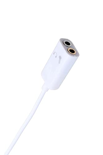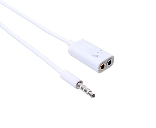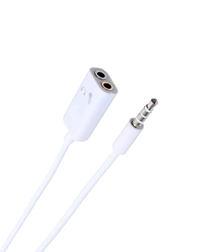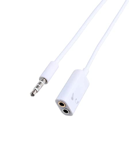 Keendex - كابل مقسم صوت من ذكر لأنثى 1923 مقاس 3.5 ملم كيندكس لون ابيض - بطول 10 سم لسماعة