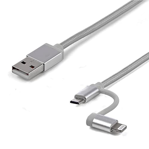 - كابل USB مزدوج 2 في 1 للشحن ومزامنة البيانات، منفذ لايتنينج (آيفون) ومنفذ مايكرو
