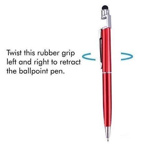 Keendex - قلم جاف متعدد الاستخدامات 4 في 1 مناسب للكتابة على شاشات اللمس من كيندكس ستايلس لشاشات لمس اندرويد مع حامل موبايل وممسحة شاشة وفلاش بضوء ليد KX 2913 احمر