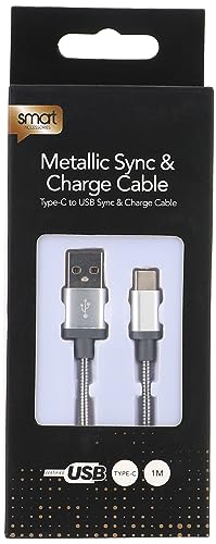 Keendex - كابل معدني نوع سي للشحن ونقل البيانات بطول 1 متر من كيندكس موديل KX2397، فضي، لهواتف خلوية