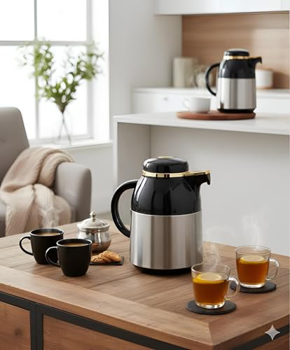 Generic - حافظ على المشروبات دافئة - سعة 1 لتر من الزجاج المبطن للحفاظ على دفء الشاي والقهوة؛ طعم نقي غير ملوث، مظهر نابض بالحياة، مناسب للرحلات اليومية والأنشطة الخارجية