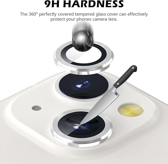 Next store - حافظ على كاميرتك بأمان مع عدسات Next Store من الزجاج المقوى بدرجة 9H وحلقة معدنية مقاومة للخدش، متوافقة مع iPhone 13/13 Mini. (فضي)