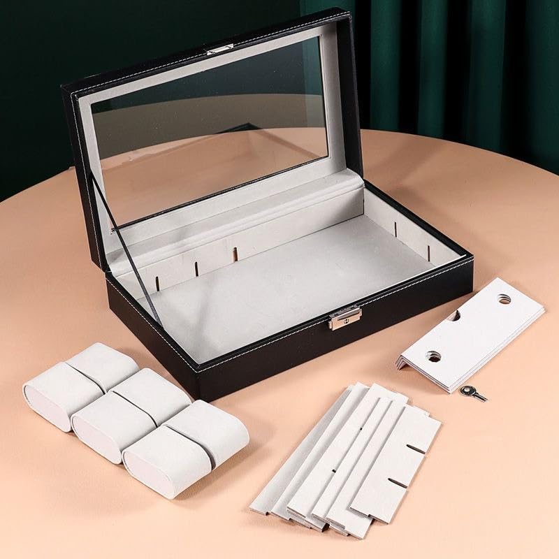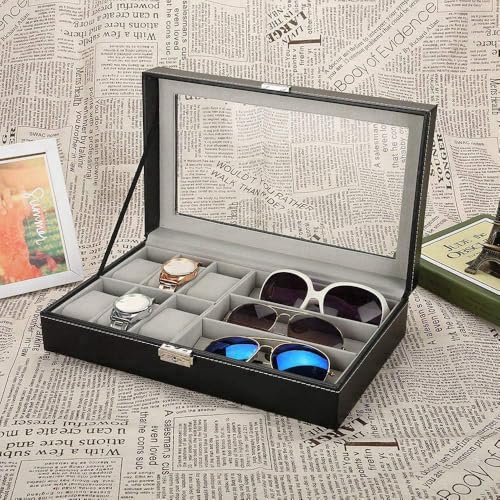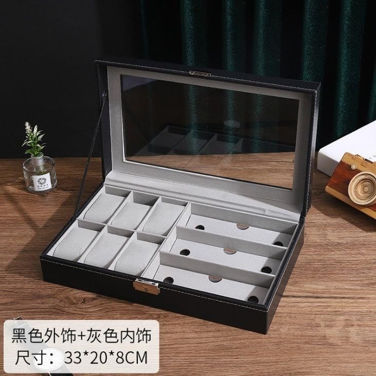 Generic - حافظ على ساعاتك ونظاراتك منظمة: صندوق تخزين أنيق 9 في 1 (6 خانات ساعات + 3 خانات نظارات) - تصميم جلدي عملي