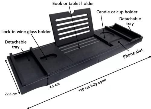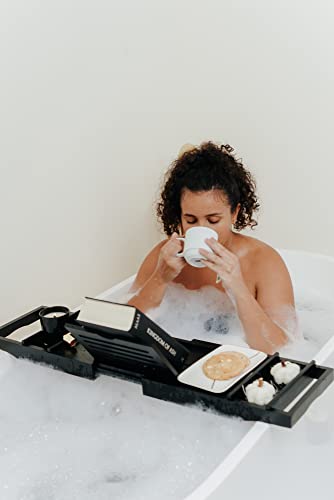 Keeper Beauty - رف حمام من الخيزران من كيبر بيوتي - رف حمام قابل للتعديل - رف حمام للمنزل والمنتجعات الصحية (أسود)