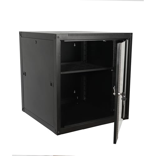 Generic - خزانة خادم شبكية مثبتة على الحائط 9U ، حاوية رف معدات قابلة للقفل من كيووركس، أسود